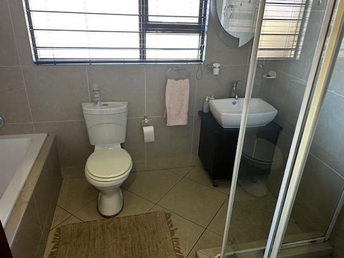 Relaxed family living in a quiet, pet-friendly cluster with low levies and easy-flow layout. Covered patio with built-in braai, private pool and garden—three bedrooms, 2.5 bathrooms.