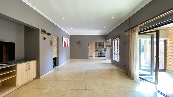 Enjoy relaxed family living in a tranquil, sought-after neighborhood with open-plan entertaining and a covered patio with built-in braai; pet-friendly yard, three bedrooms, two bathrooms, double garage.