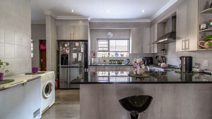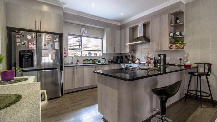 Effortless entertaining and family living in an exclusive six-unit complex near shops and schools, featuring an enclosed braai patio, granite kitchen, three bedrooms, two baths and double garage.