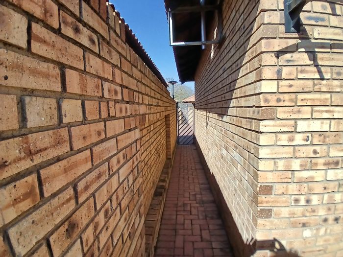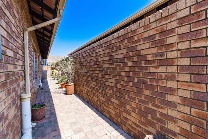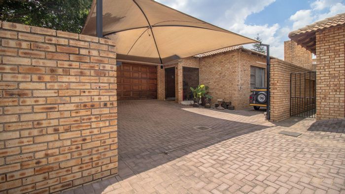Low-maintenance face-brick simplex in secure New Redruth complex, open-plan living and modern kitchen flowing to enclosed patio with built-in braai, solar panels, garage and carport — 3 beds, 2 baths.