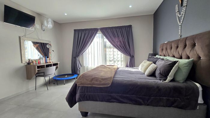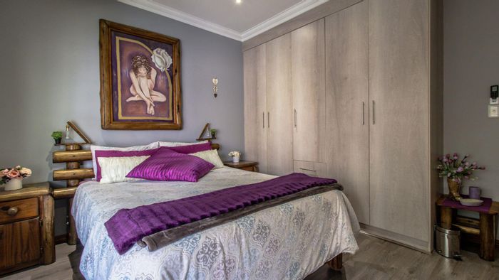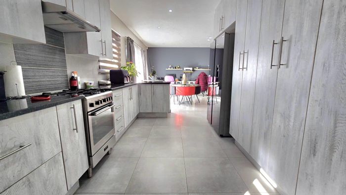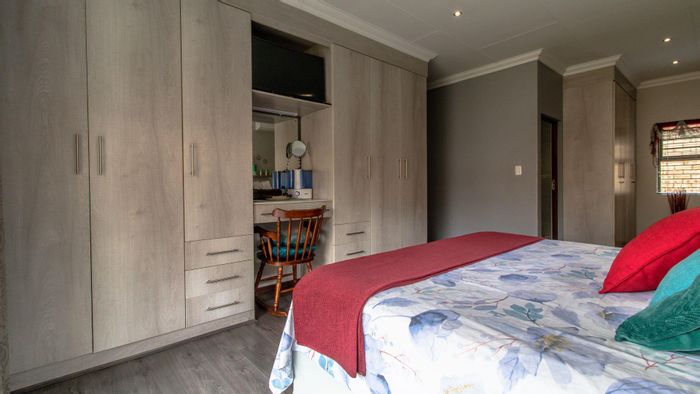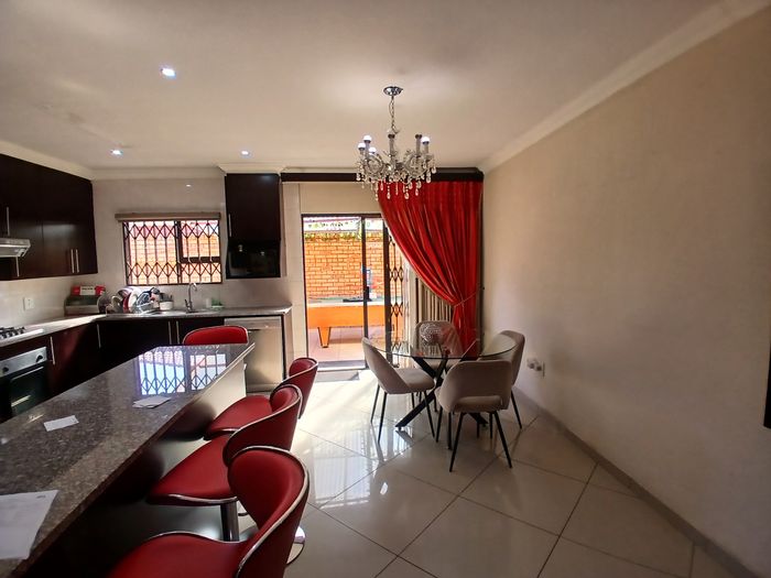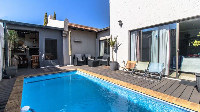 Relaxed family living in a quiet, pet-friendly cluster with low levies and easy-flow layout. Covered patio with built-in braai, private pool and garden—three bedrooms, 2.5 bathrooms.