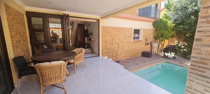 Effortless family living and year-round entertaining in a sought-after complex near shops, schools and main roads; covered patio opens to heated pool and braai. Four beds, four baths, double garage.
