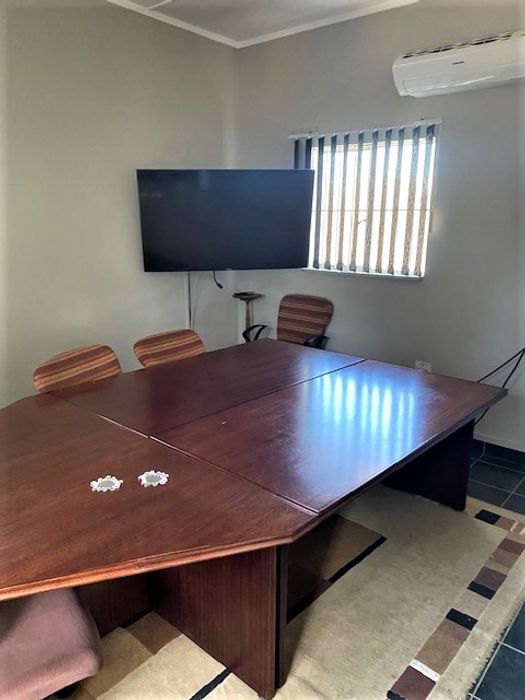 582 m² office space with boardroom, small kitchen, and workshop on 2766 m² land. Remote entrance gate, prepaid electricity.