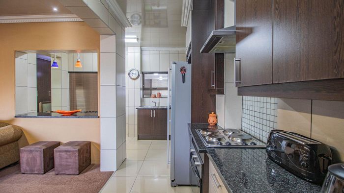 Corner commercial building on a busy intersection with showroom, reception and workshop, plus contemporary two-bedroom flatlet with modern kitchen — ideal live-work opportunity, ample parking.