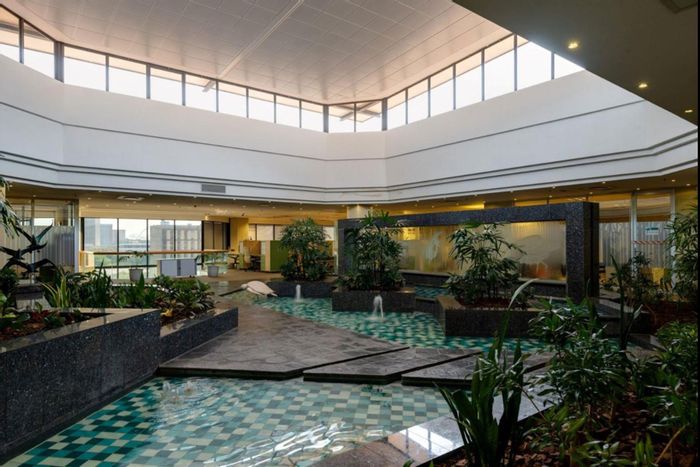Waterfront office in Point Waterfront, Durban — open-plan and private spaces with ocean-view balcony, inverter backup, 18 secure parking bays, 24-hour security; 412 m².