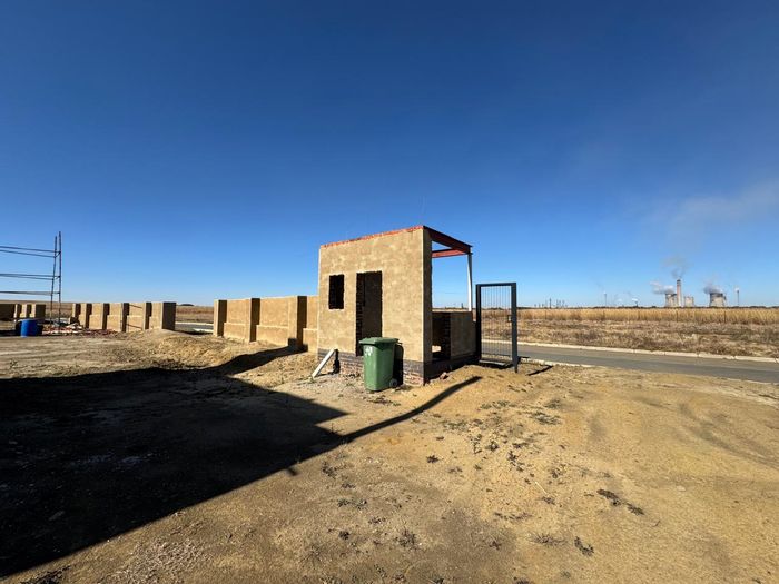 Prime industrial site by Sasol Charlie 1 main entrance, secured with perimeter fencing, dual gates and guardhouse. Partially completed 787 m² structure with approved building plans.