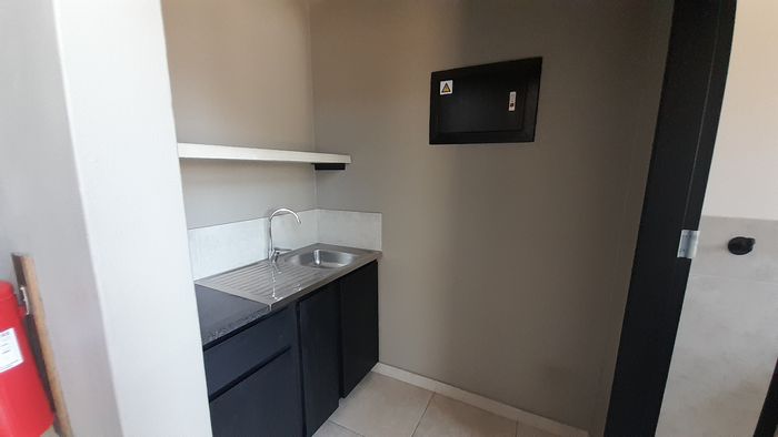 Flexible ground-floor workspace in Innovation Worx, Halfway House — open-plan 116m² with mezzanine, roller shutter, kitchenette and 24-hour access; close to the N1 and Mall of Africa.