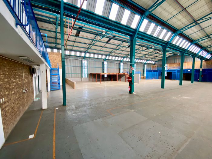 1,076m² warehouse with 100m² office space, 2 bathrooms, located in Randjespark, ideal for industrial uses.
