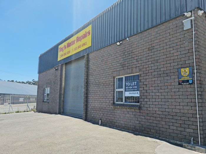 197m² industrial warehouse to let in the Strand, 2 bathrooms, available December 1, 2024. R10,826 + VAT monthly.