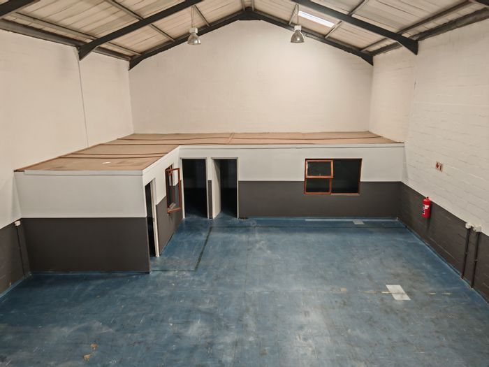 280m² industrial warehouse with 2 bathrooms, 2 offices, and enclosed yard. Available April 1, 2025 for R19,500 excl. VAT.