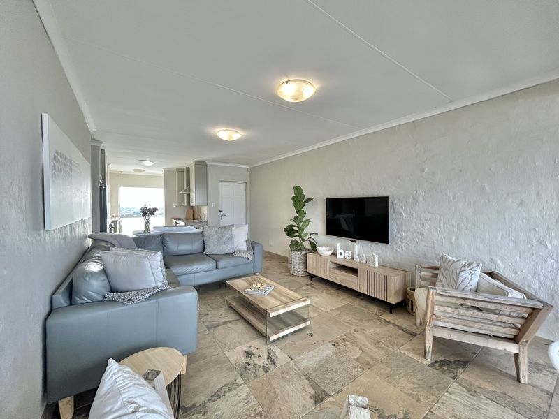 Coastal lock-up-and-go in sought-after Aston Bay, secure complex with alarm and allocated parking. Open-plan living with polished concrete floors, marble kitchen counters, built-in braai and two balconies.