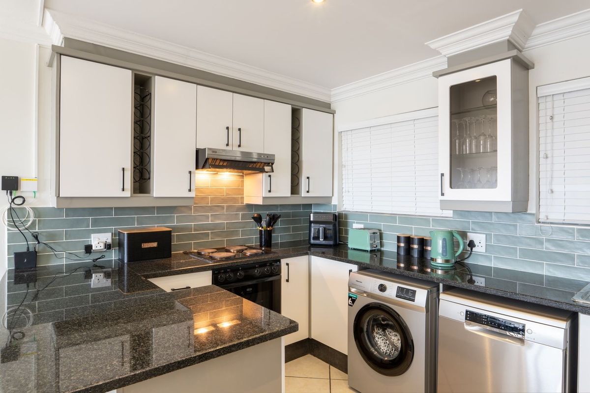 Coastal living in Jeffreys Bay Central with easy beach access and cafes; sunlit, furnished flat featuring a contemporary kitchen with breakfast bar, two bedrooms and fibre internet.