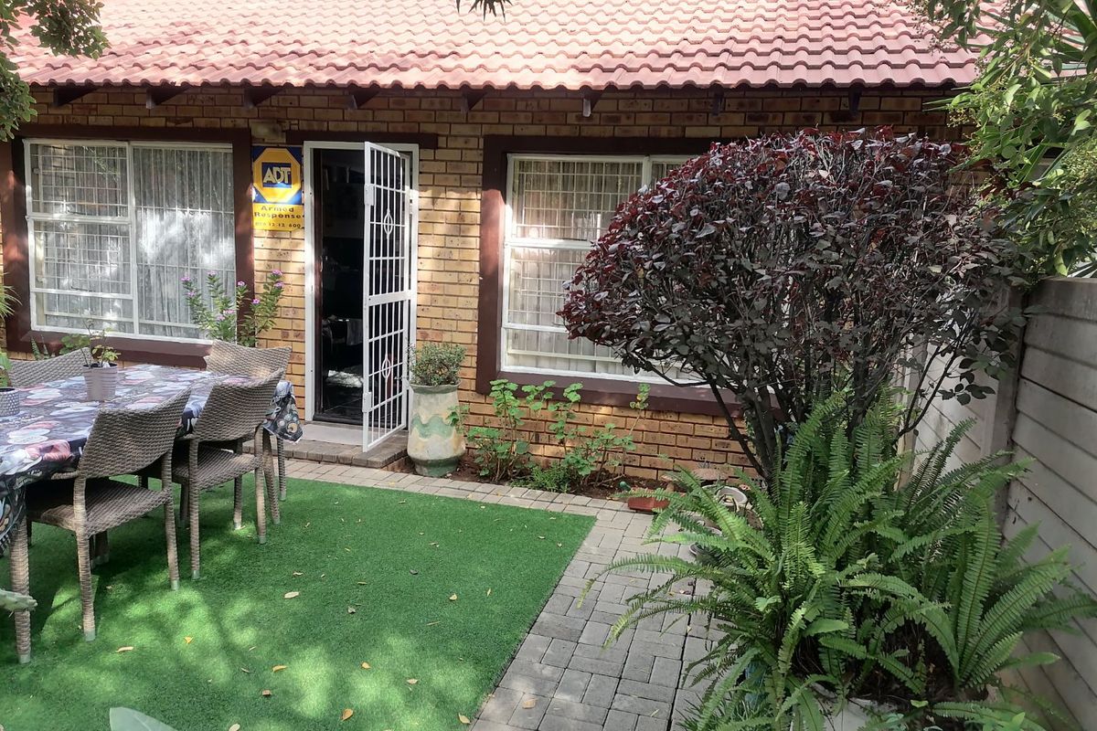 Low-maintenance townhouse in a secure Bloemfontein complex, close to amenities; renovated open-plan modern kitchen with generous built-ins, manageable garden, two bedrooms, one bathroom and single garage.