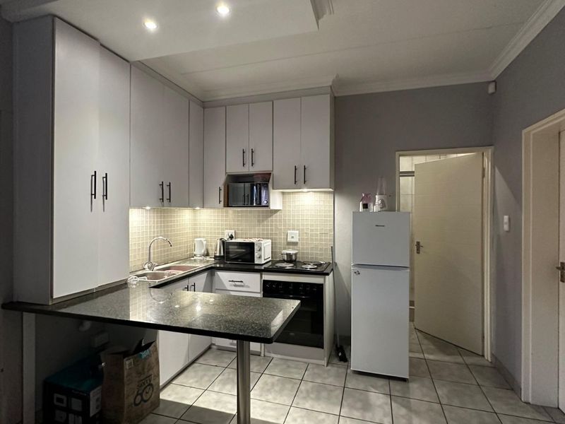 Hassle-free student living within walking distance of the University of the Free State, featuring a fully equipped kitchen and furnished rooms — two bedrooms, one bath and covered parking.