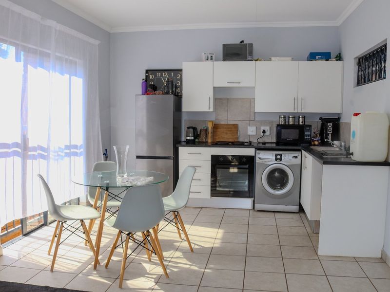 Relaxed, convenient living in Clarina near Mabopane Highway and Daan de Wet, close to schools and the Rosslyn hub. Ground-floor unit with partial open kitchen and communal pools.