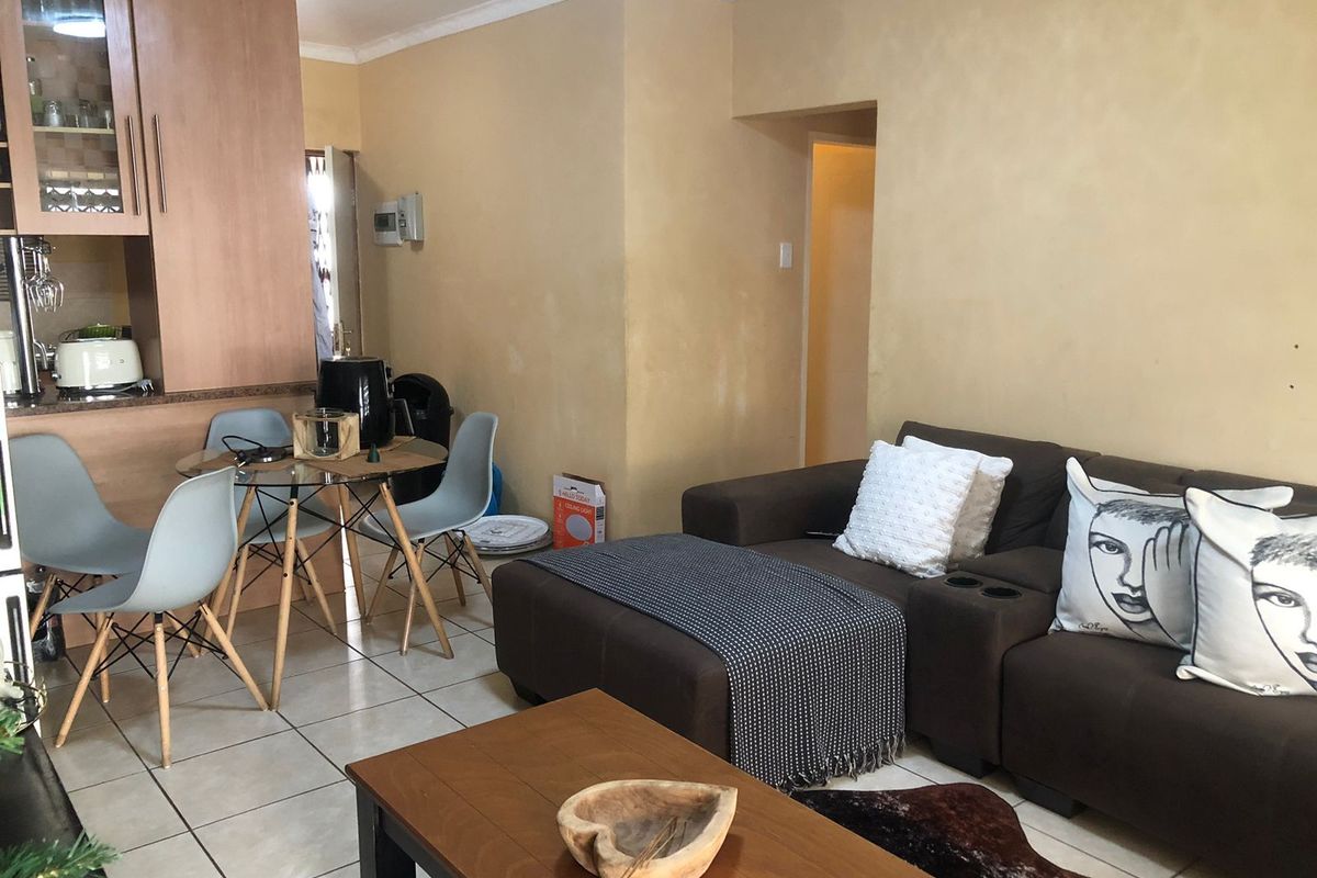 This exquisite 2 bedroom,1 bathroom, spacious open plan living area with fitted cupboards modern kitchen apartment is nestled in the heart of a prestigious golf estate.