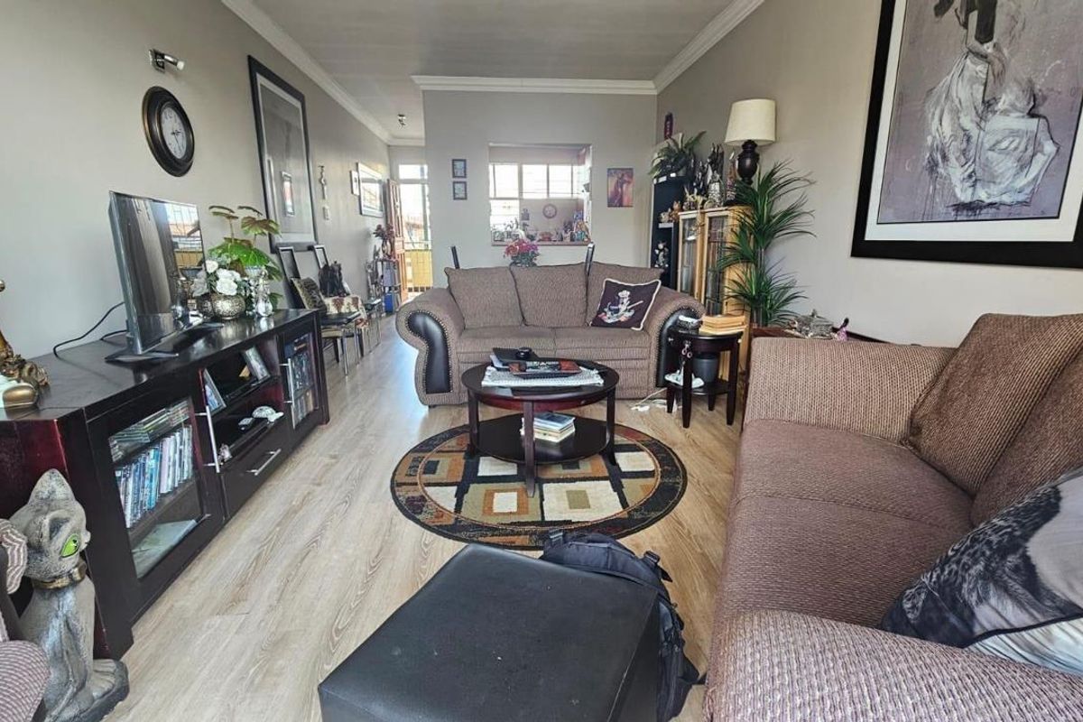 Step inside to find two generously sized bedrooms with built-in cupboards and a full bathroom featuring both a bath and shower. The open-plan lounge and dining area flow seamlessly to a private balcony, creating a warm space for everyday living or entertaining guests. A neat kitchen, complete with ample cupboards and a breakfast nook, makes daily meals effortless.