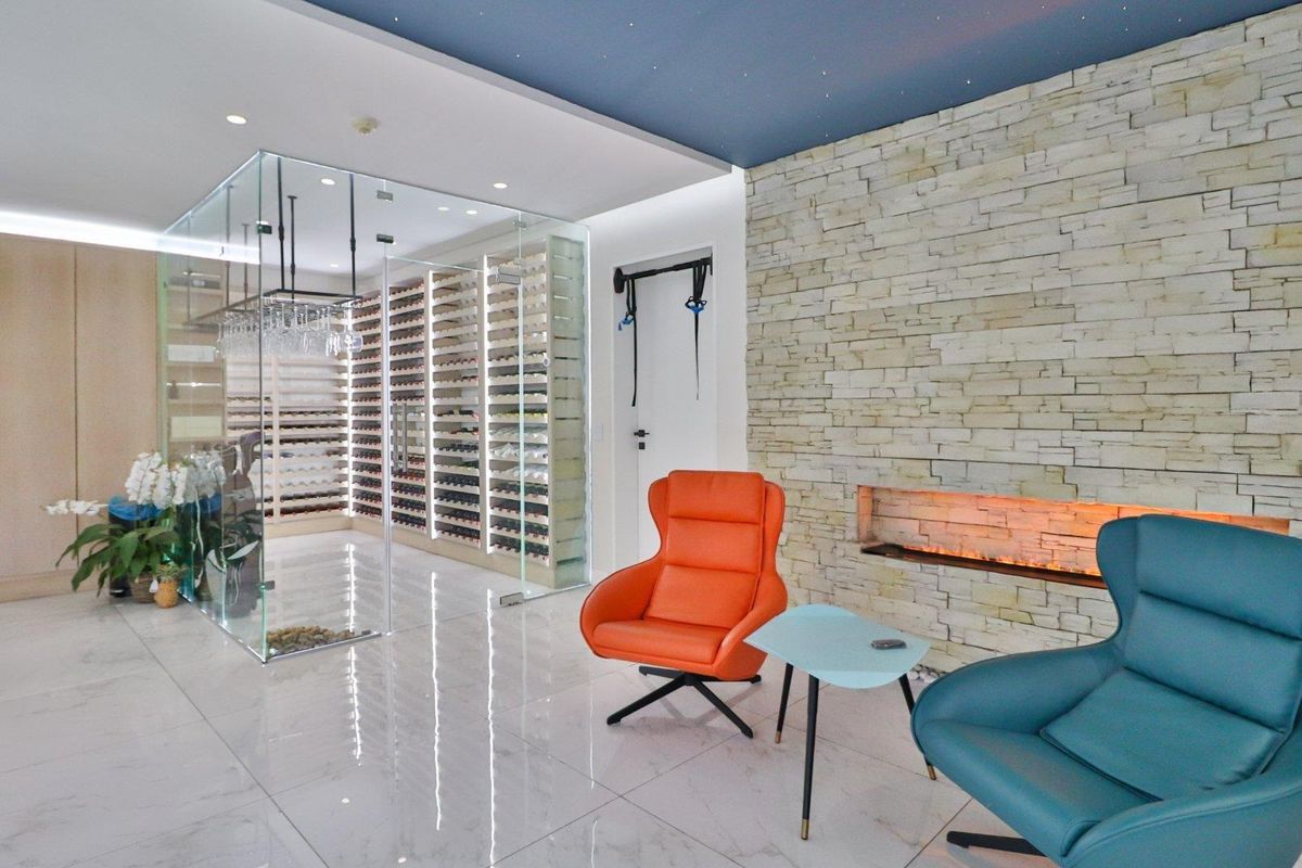 The grand entrance leads to a stunning wine cellar and an open-plan modern living space with a purifying air feature and a starlight ceiling.