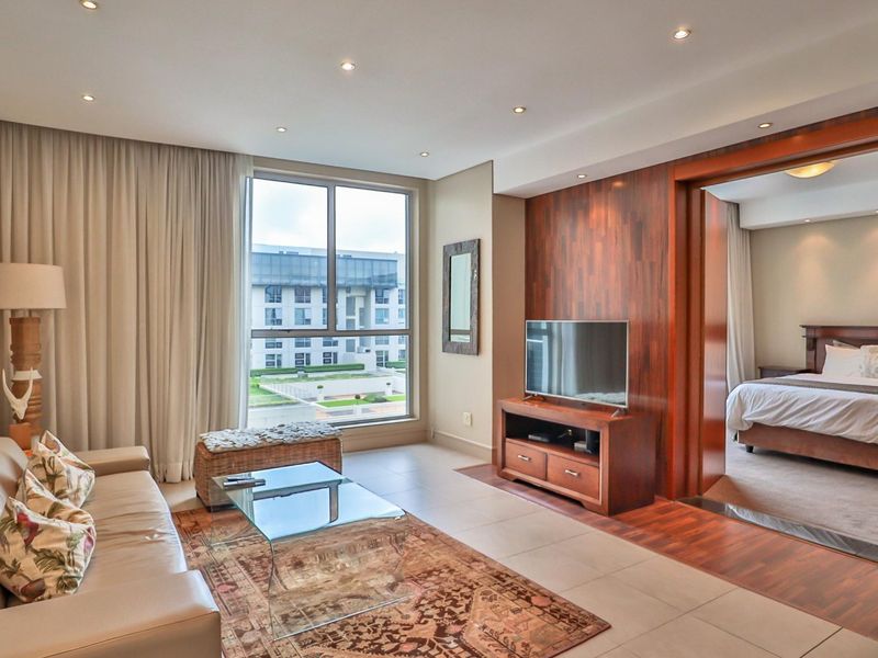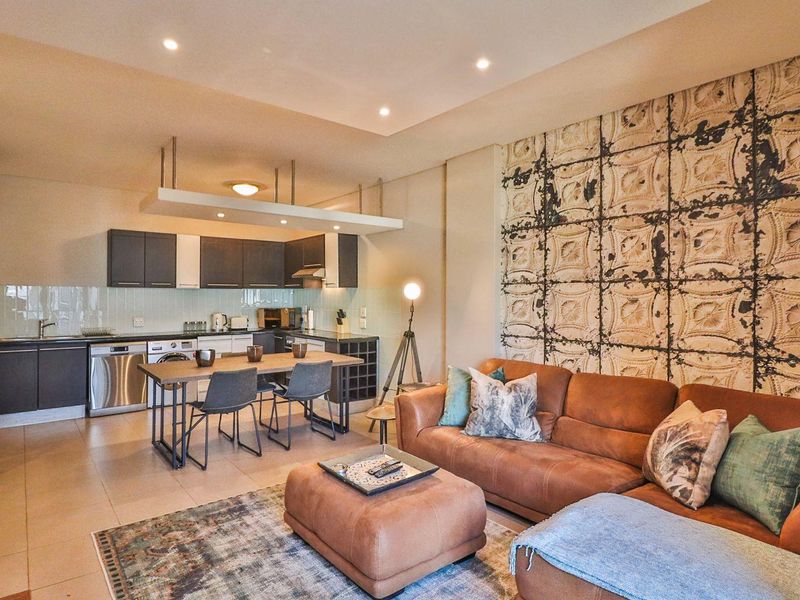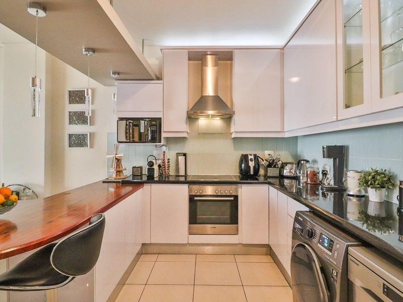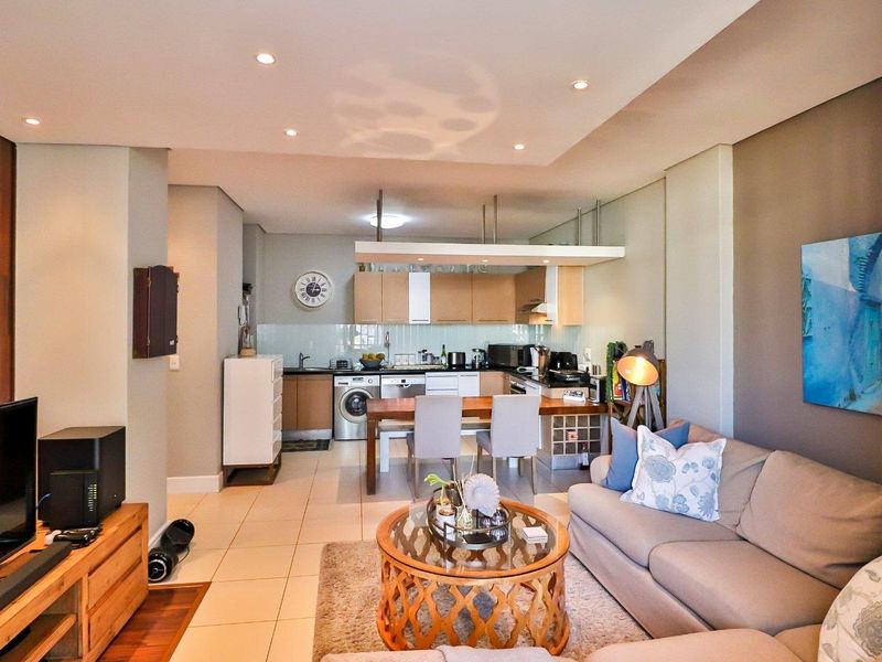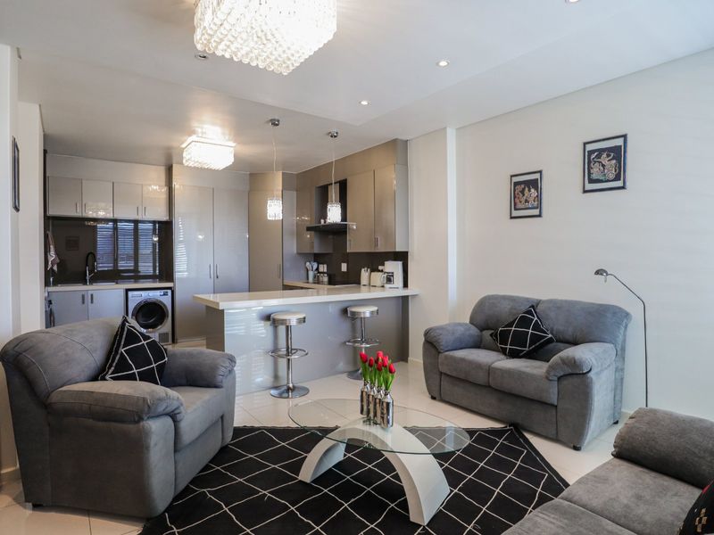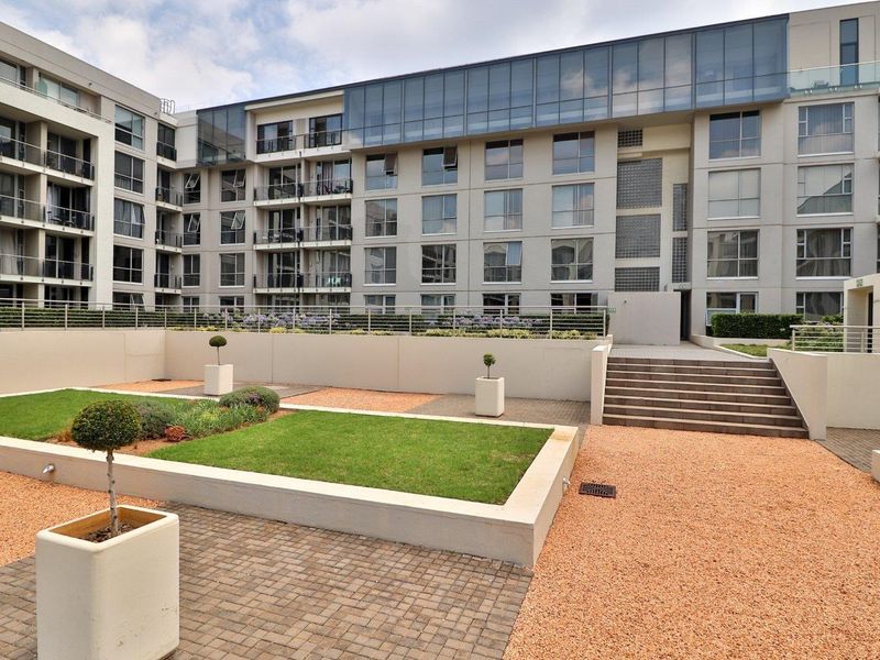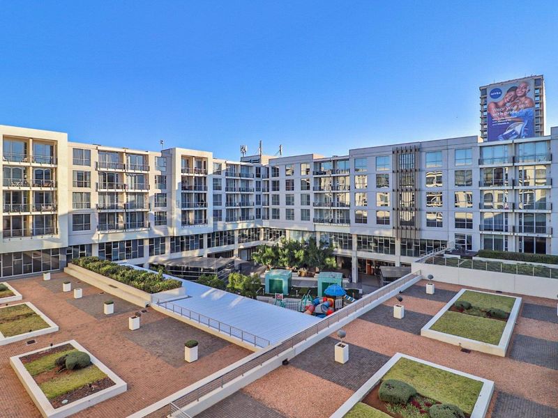 Live in Bedford Center with shops, transport and OR Tambo access; open-plan kitchen flows to lounge, bedroom balcony overlooking the Piazza, one bedroom, 1.5 baths and secure basement parking.