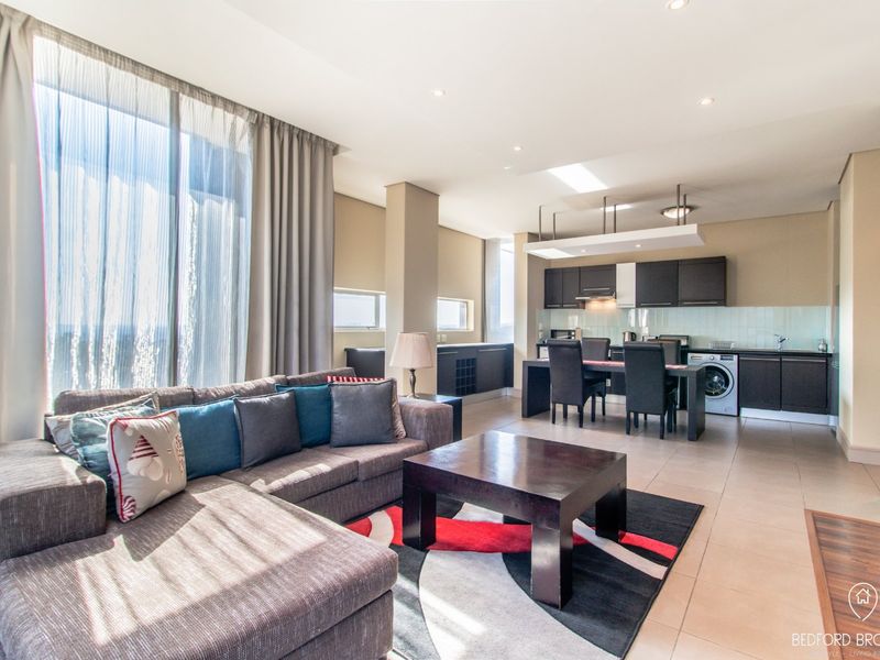 Effortless living close to OR Tambo with direct access to Bedford Centre — move-in-ready open-plan apartment with a private balcony, two bedrooms, two bathrooms, and secure parking.