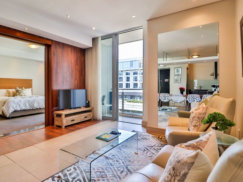 Resort-style living and easy lock-up-and-go convenience just 10 minutes from OR Tambo, with a private balcony overlooking landscaped gardens and koi pond, open-plan kitchen, two beds, two baths.