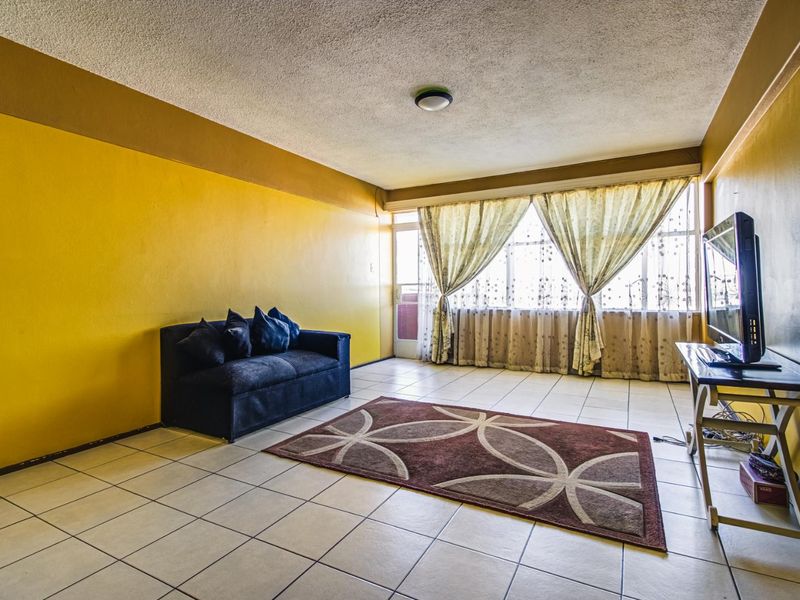 Enjoy low-maintenance central Benoni living with a bright entrance hall flowing to a large tiled lounge and neat kitchen with under-counter oven; secure basement carport, two bedrooms, one bathroom.