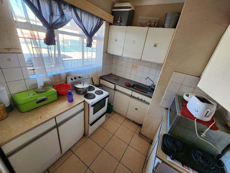 Two-bedroom apartment in Benoni with a kitchen, living area, built-in cupboards, and close to amenities.