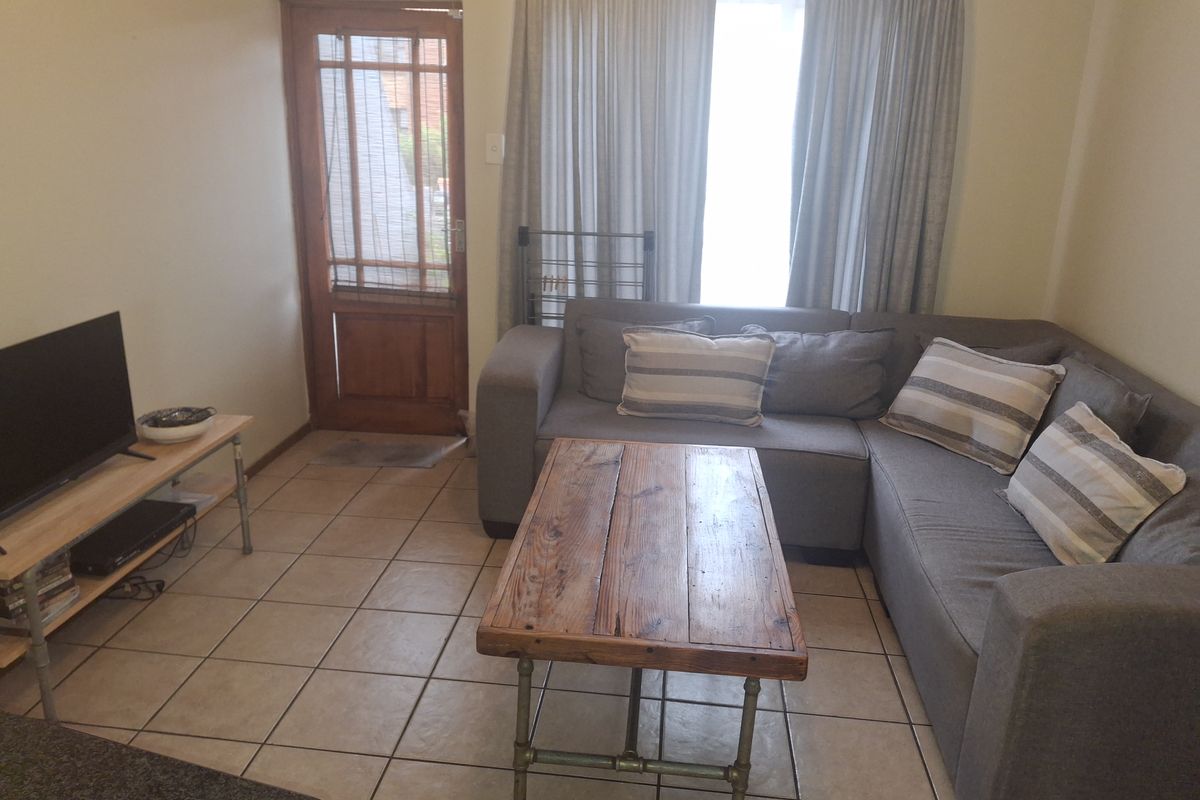 The home features an open-plan kitchen and lounge, designed for easy everyday living. The kitchen includes a breakfast nook, grocery cupboard, and electric hob and oven. The lounge flows onto a private balcony—ideal for relaxing.