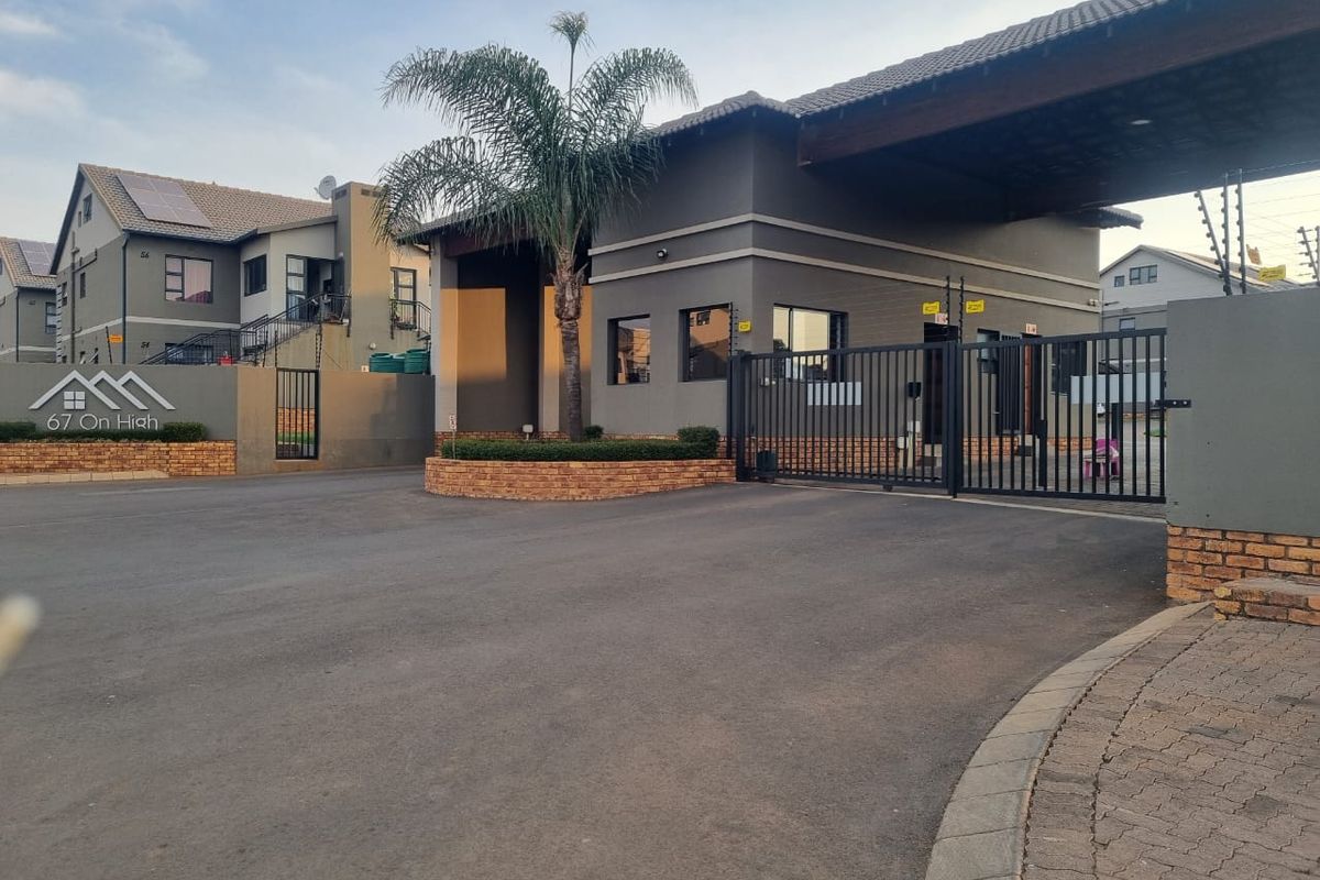 This spacious unit features an open-plan lounge and kitchen, perfect for entertaining. Upstairs, you'll find a bedroom with its own toilet, shower, and basin. Downstairs, there's a second bathroom with a bath, shower, basin, and toilet. The unit is secure with a security gate and burglar bars.