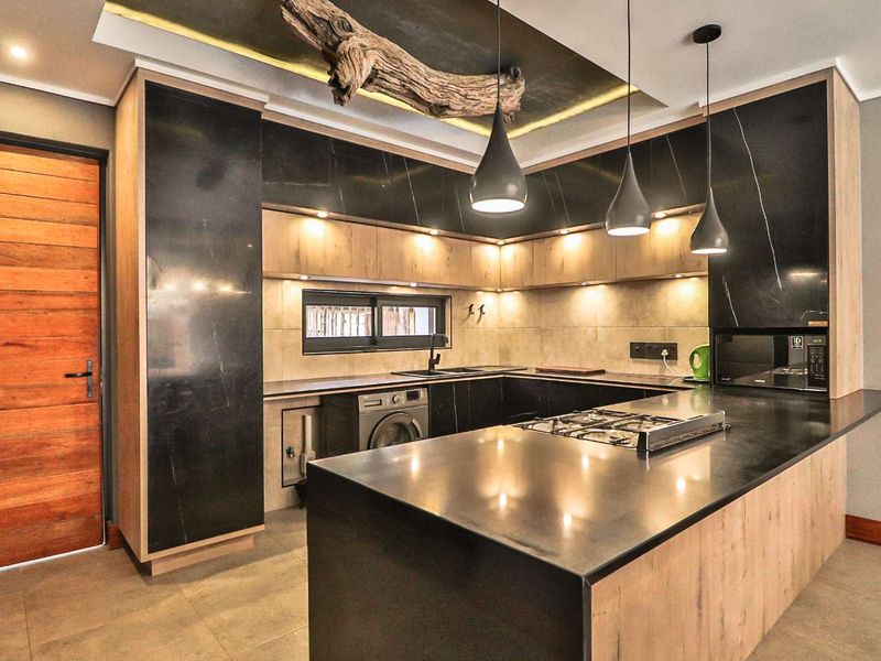 Ultra-modern ground-floor apartment in sought-after Rynfield, minutes from Linmed Hospital. Wrap-around Caesarstone kitchen with SMEG appliances, private walled garden, pet-friendly. Two bedrooms, two bathrooms, two covered bays.