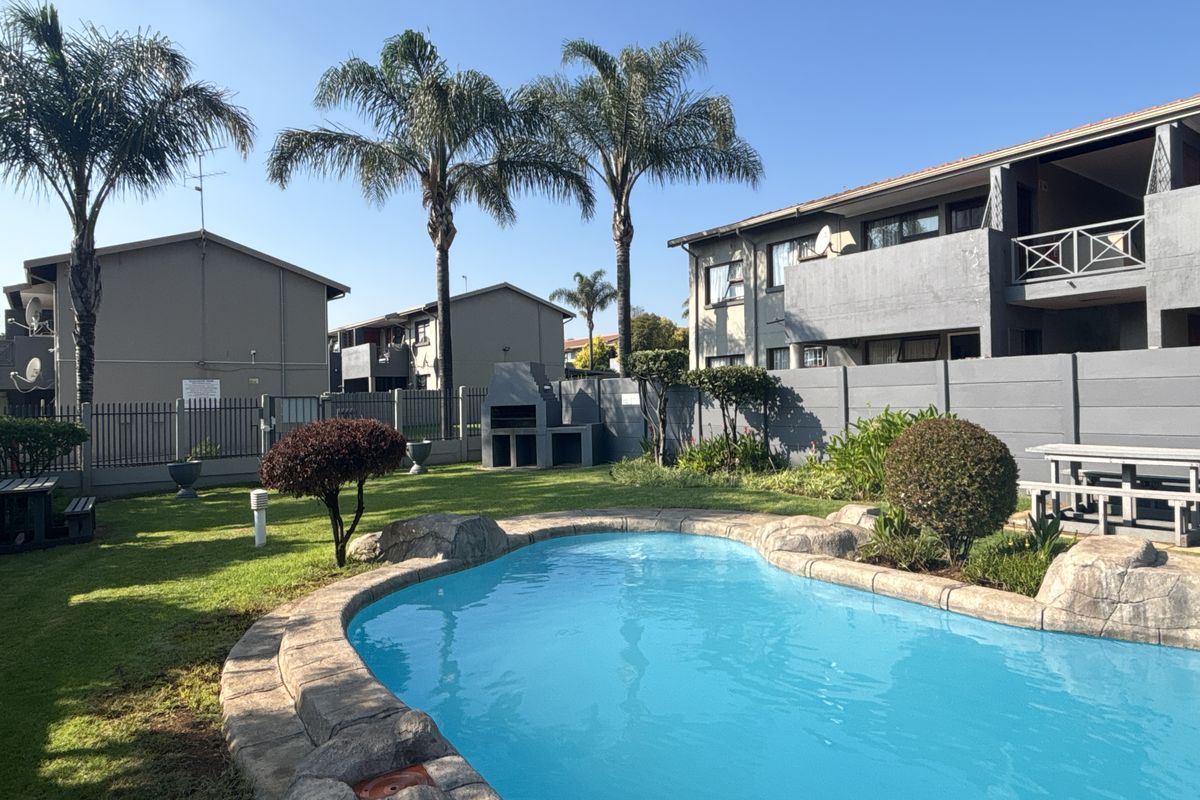 Easy, social living in sought-after Vlei Loerie Park, Benoni — light first-floor apartment with private balcony, communal pool and braai, two bedrooms, one bathroom and covered parking.