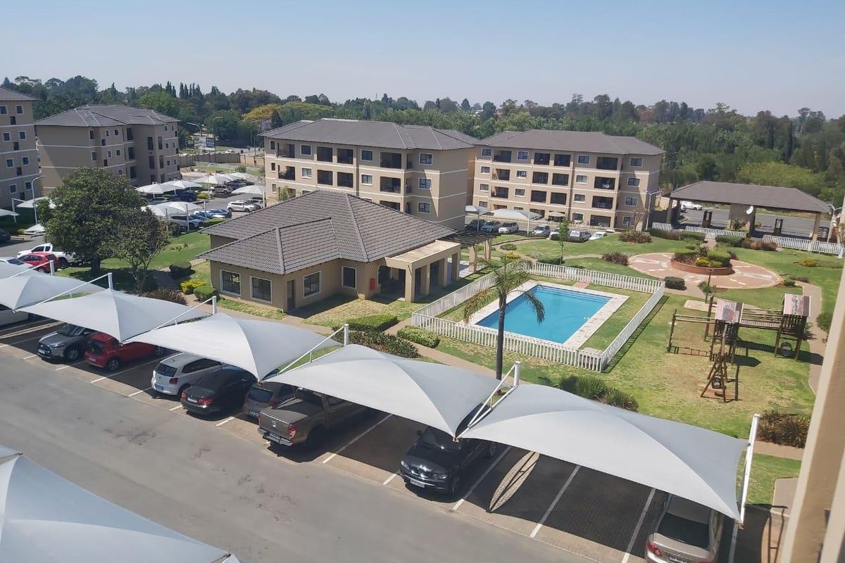 Peaceful top-floor living with private balcony in a secure complex — pool, gym and 24-hour biometric access. One-bedroom, one-bath apartment with fitted cupboards and carport.