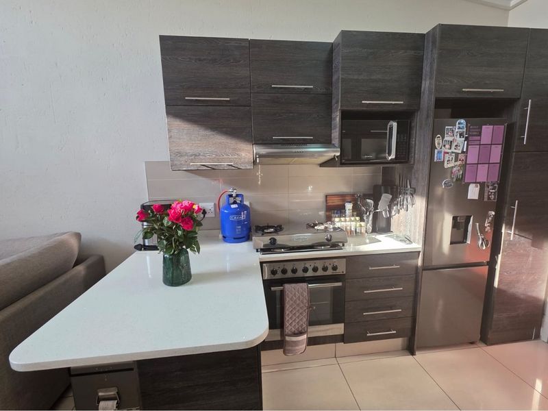 Urban convenience in Eveleigh's Upper East Side with easy OR Tambo access, contemporary open-plan kitchen with gas stove, secure estate amenities, and two bedrooms, two bathrooms.