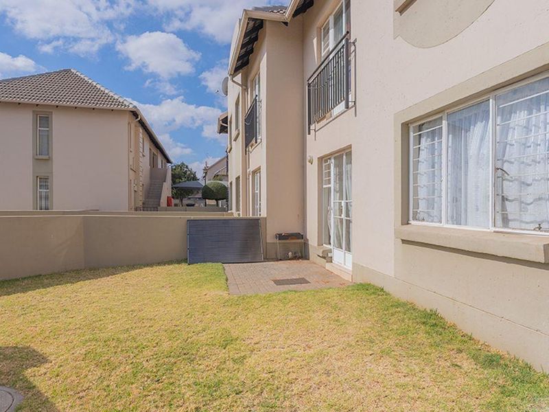 1 bedroom, 1 bathroom ground-floor unit in Boksburg, 46 m² with yard, pool, and 24-hour security.