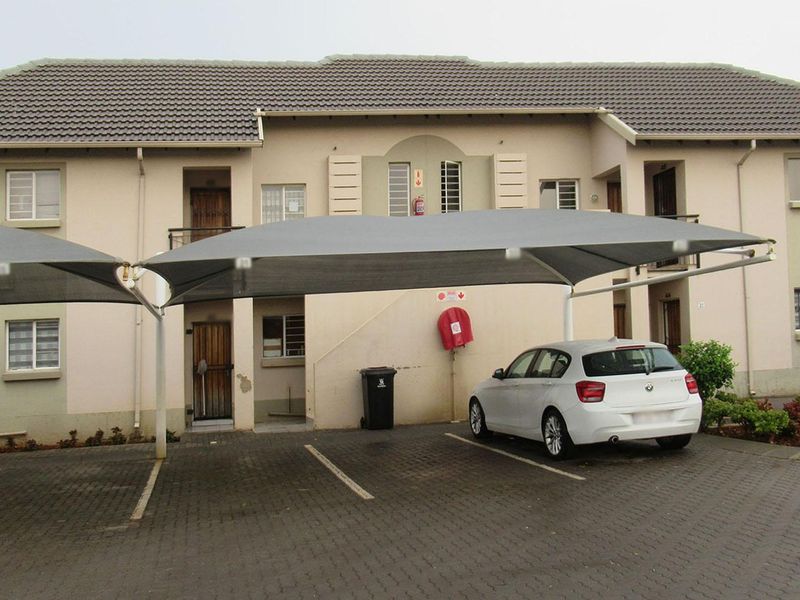 Relaxed suburban living near shops and Carnival City in Klippoortjie, Boksburg — set in a boom-gated community with 24-hour security; two bedrooms, one bathroom, covered parking.