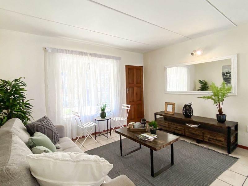 Relaxed ground-floor living with private garden access in Klipoortjie, close to highways, shops and schools. Modern kitchen, communal pool; two bedrooms, one bathroom, covered parking.