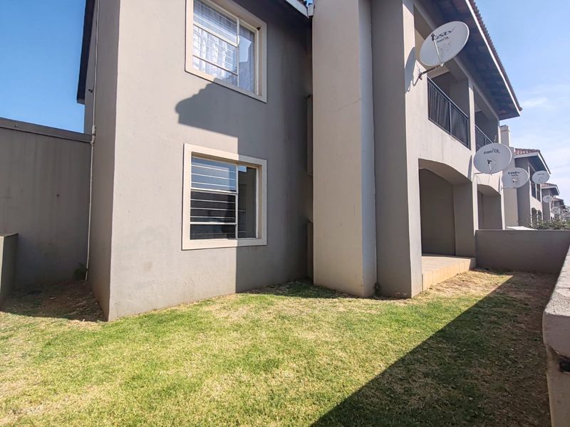 Enjoy secure, low-maintenance living in Brenthurst, Brakpan with communal pool and entertainment area; ground-floor two-bedroom, one-bath unit features veranda with built-in braai and small garden, single carport.