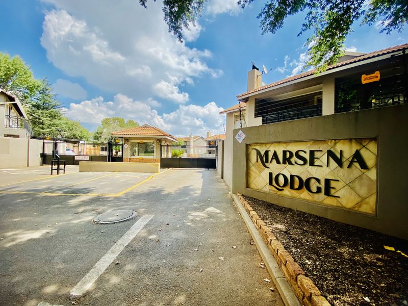 Enjoy secure Marsena Lodge living with 24-hour manned gate, communal pool and entertainment area, private garden patio and solar panels — ground-floor apartment with two bedrooms, one bathroom and covered parking.