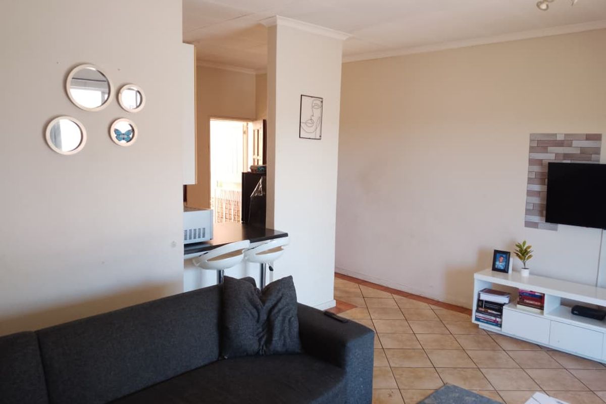 The apartment features a functional open-plan living area that connects to a neat kitchen, creating a comfortable and easy-to-maintain space. Both bedrooms include built-in cupboards and receive good natural light, while the bathroom is clean and well-kept.
