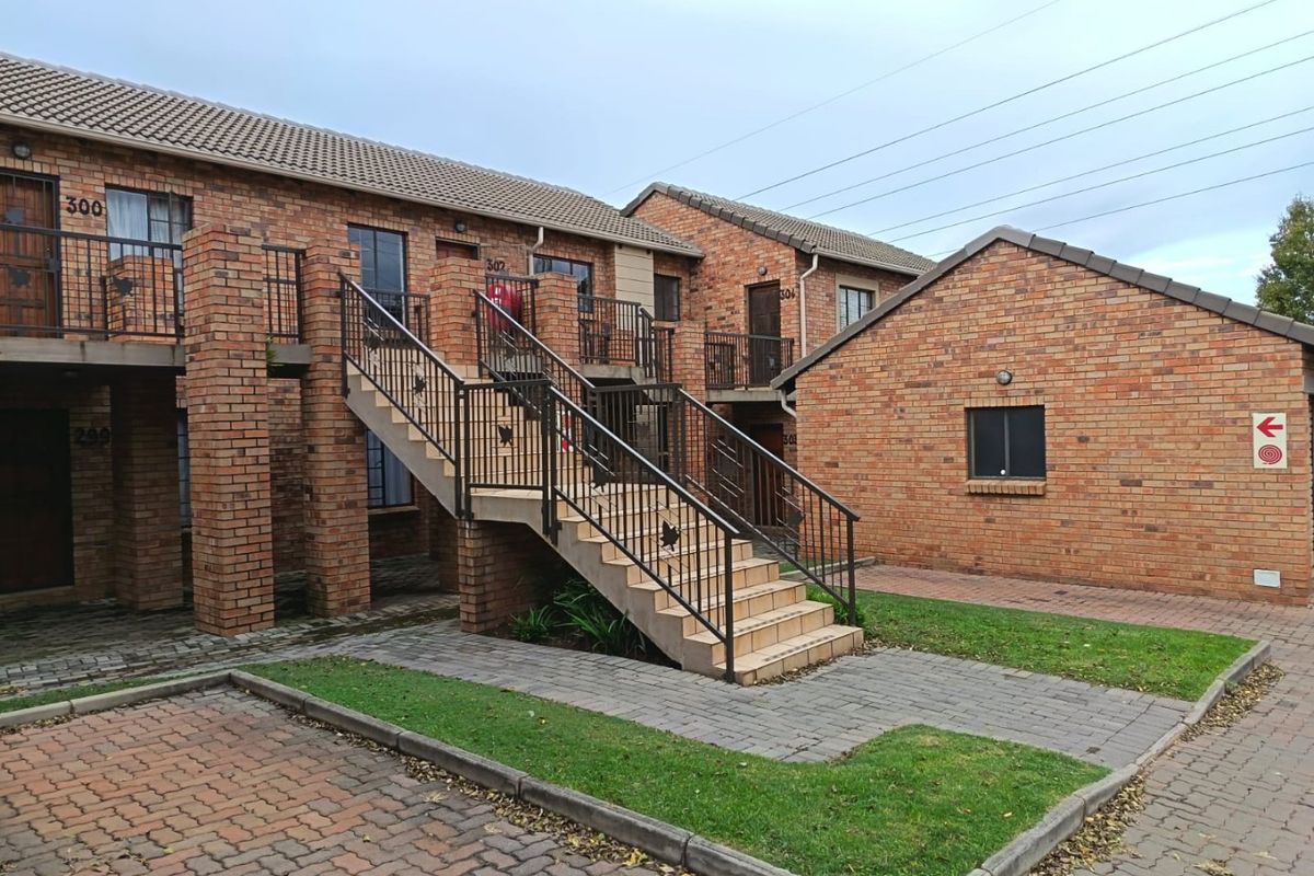 Enjoy secure Eco Park Estate living with communal pool and braai area, close to schools and routes — light first-floor apartment with two bedrooms and single garage.