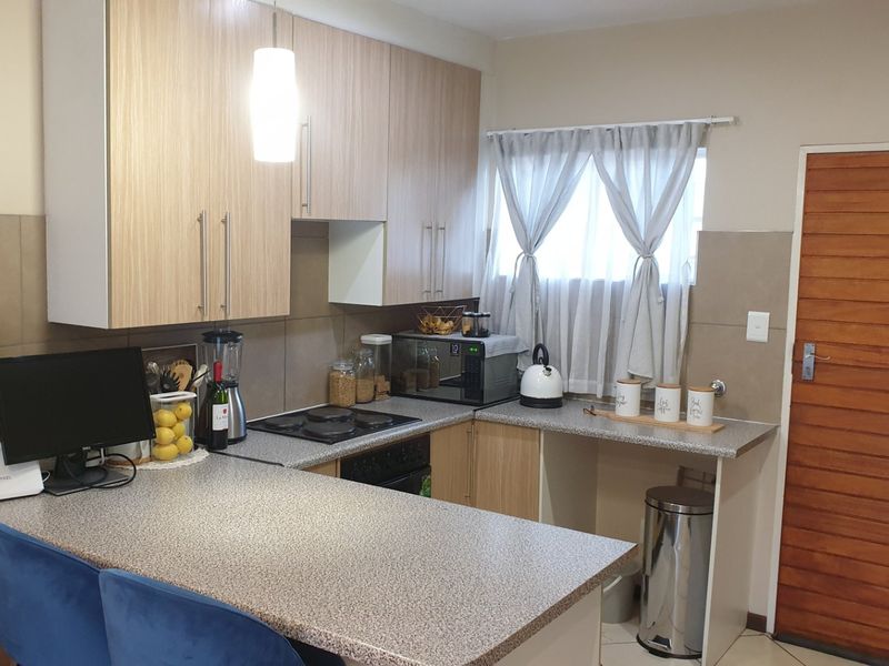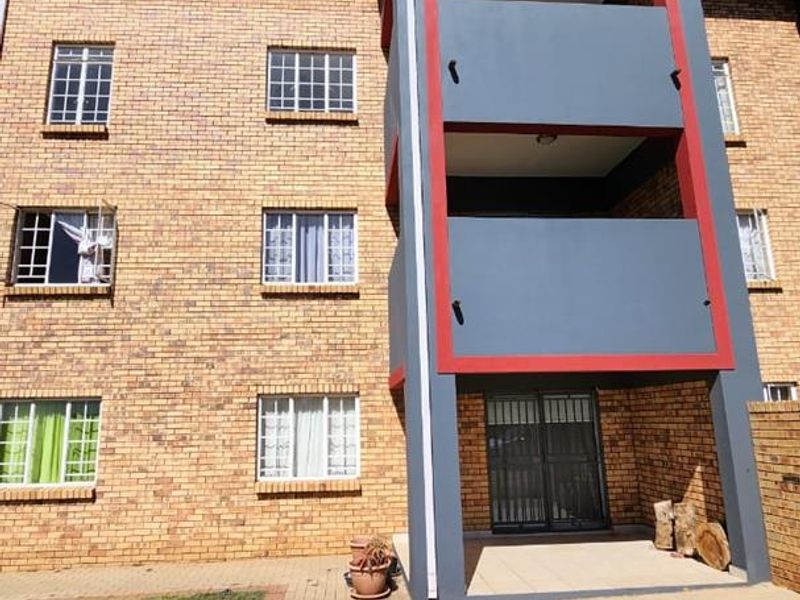 Effortless ground-floor living near R55/Ruimte Road with quick N14/N1 access and nearby malls. Open-plan layout with modern kitchen and covered patio — two beds, one bath, two covered parking.