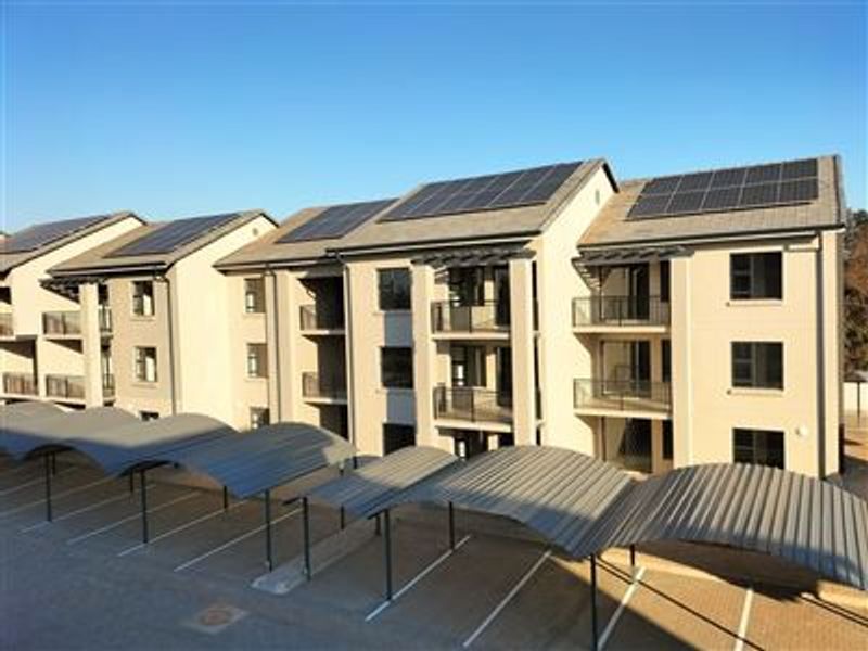 Upmarket first-floor apartment in Du Vin Estate with balcony and open-plan living, fibre-ready and prepaid electricity. 24/7 security estate near schools and N14. 3 beds, 2 baths, double carport.