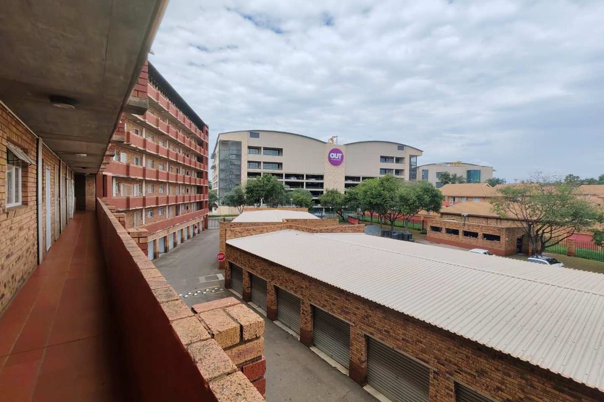 2 bedrooms, 1 bathroom, open plan living and kitchen, balcony, lock-up garage, 81 m². Rates R350 pm, levy R2617.