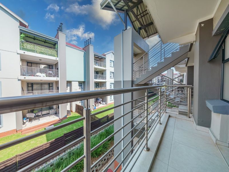 Effortless lock-up-and-go living in Modderfontein's Edenvale pocket, with sunlit open-plan spaces and balcony, a communal garden and fenced pool with braai; one-bedroom en suite, carport.