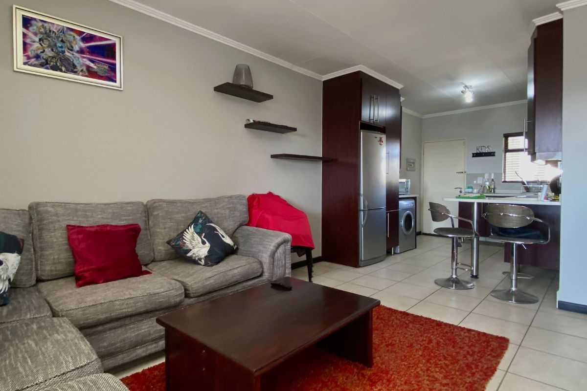 This modern 2-bedroom, 2-bathroom townhouse offers comfortable and convenient living in a pet-friendly complex. The main bedroom includes an en-suite bathroom, while a guest toilet adds extra convenience. The home features a tiled open-plan layout with a lounge, TV room, and family room, creating versatile living spaces for relaxation and entertainment. The kitchen is fitted with granite countertops, a breakfast nook, and has prepaid electricity for easy budgeting. Outdoors, residents can enjoy a communal pool and braai area, with two covered carports and additional parking available. This 80 m2 unit is perfect for small families, couples, or first-time buyers looking for secure and easy living.