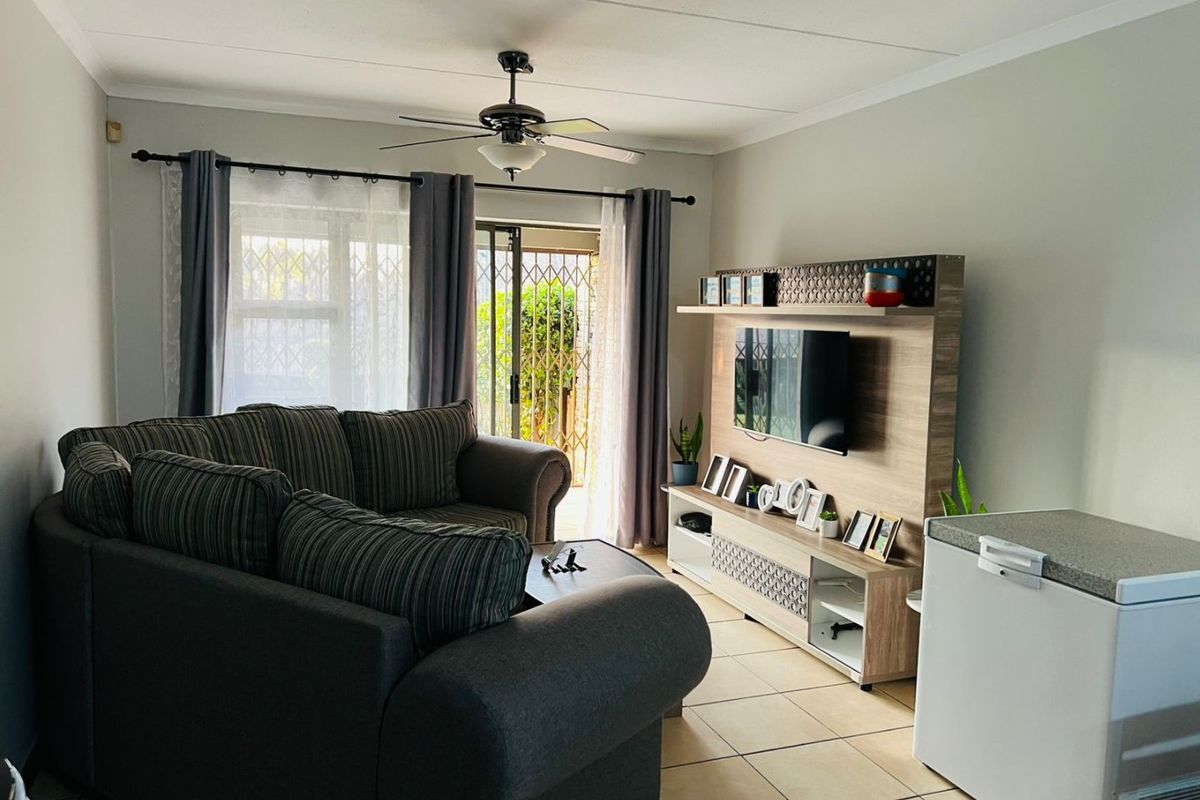 Step into a well-appointed kitchen featuring granite countertops, double sinks, a handy pantry, and space for a wet appliance. The open-plan lounge flows effortlessly onto a spacious and secure patio and private garden – ideal for entertaining or simply unwinding while enjoying elevated views over Modderfontein Road and the estate surroundings.