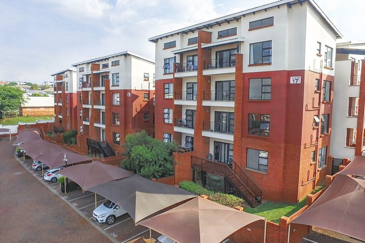 Effortless Greenstone Hill living with malls, dining and excellent commuter links; modern open-plan kitchen flowing to a private balcony with Modderfontein views. Two bedrooms, two bathrooms, two covered parking bays.