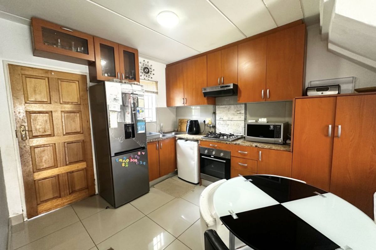 This well-kept 3-bedroom, 2-bathroom duplex offers 77 m2 of comfortable living in a secure, 24-hour manned complex. The main bedroom includes an en-suite bathroom, and the open-plan lounge and dining area flows into a practical kitchen with granite countertops, a gas stove, solar geyser, and plenty of cupboard space.