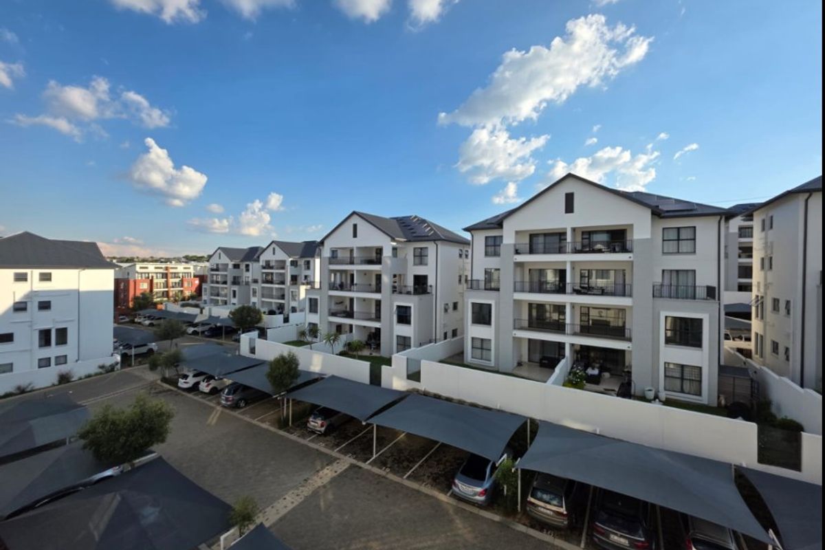 Easy lock-up-and-go living in a secure, lifestyle-focused complex with pool and braai — one-bedroom flat with en-suite, modern kitchen, private balcony, prepaid electricity and covered carport.