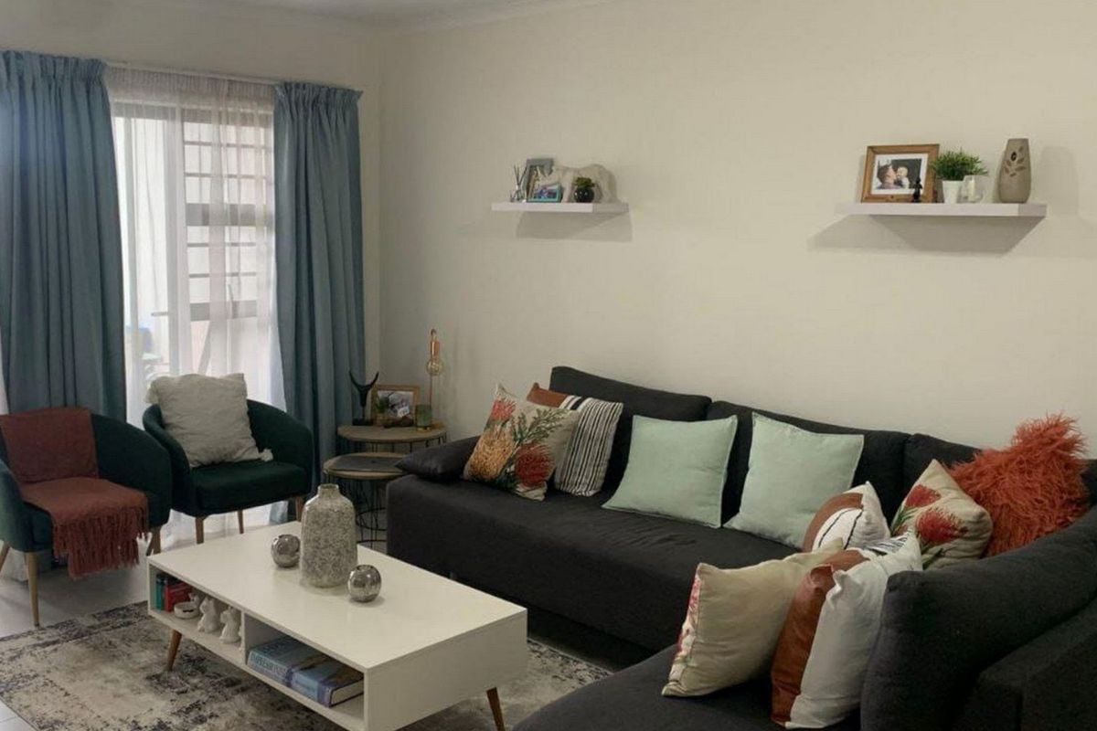 Enjoy outdoor living with direct access to Modderfontein Nature Reserve — trails, fishing and markets nearby. Contemporary apartment with gym, pool and a gas braai; three beds, two baths, double garage.